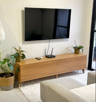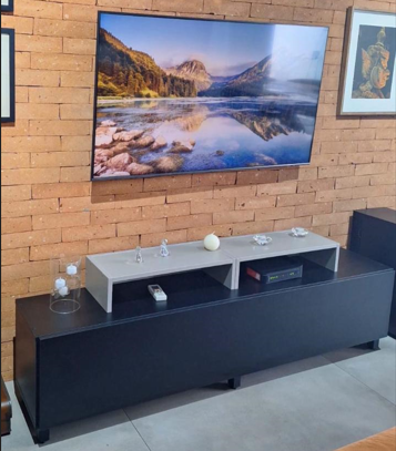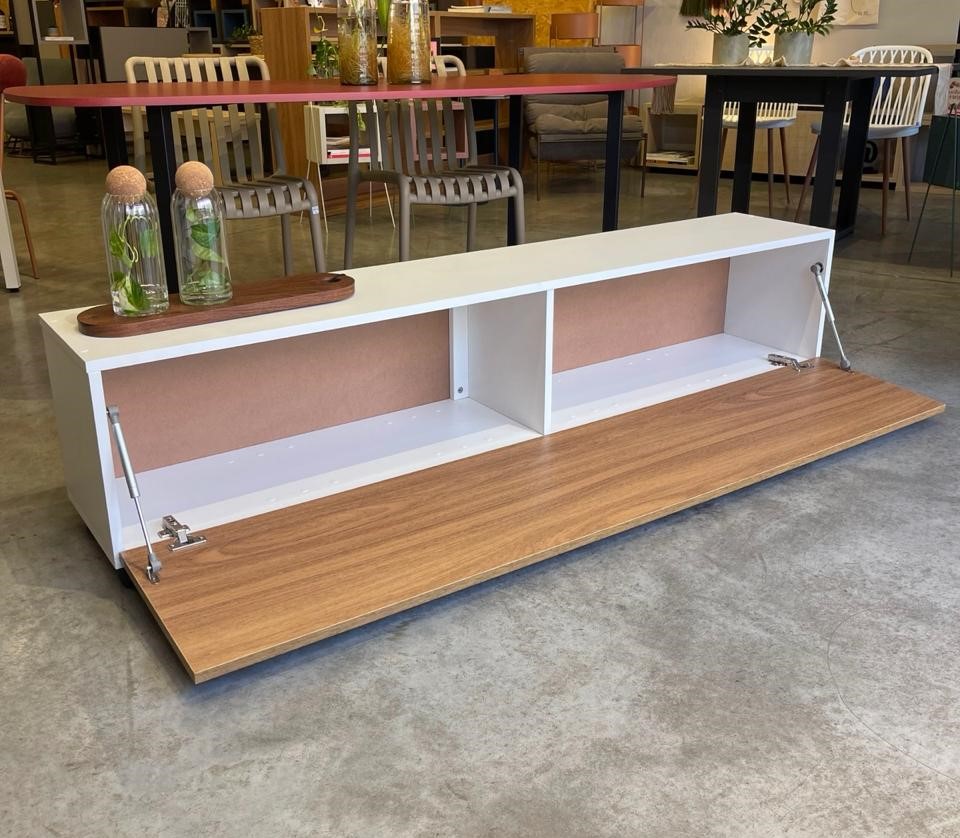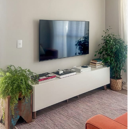 O armário alto é mais um dos nossos móveis com muitas funções. Aqui ele se transformou em um rack de TV lindo e funcional.